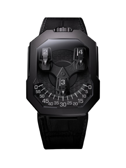 - Bras en titane Grade 5, pyramides rotatives en aluminium anodisé, et cadran à motif d'écailles de poisson