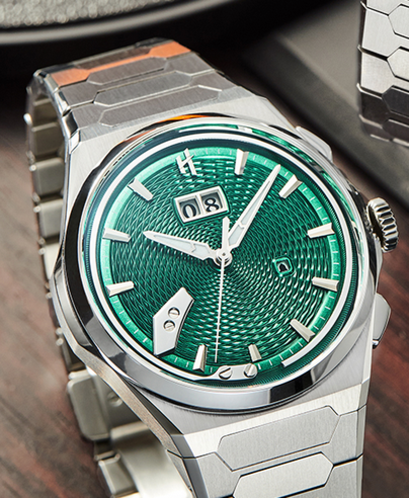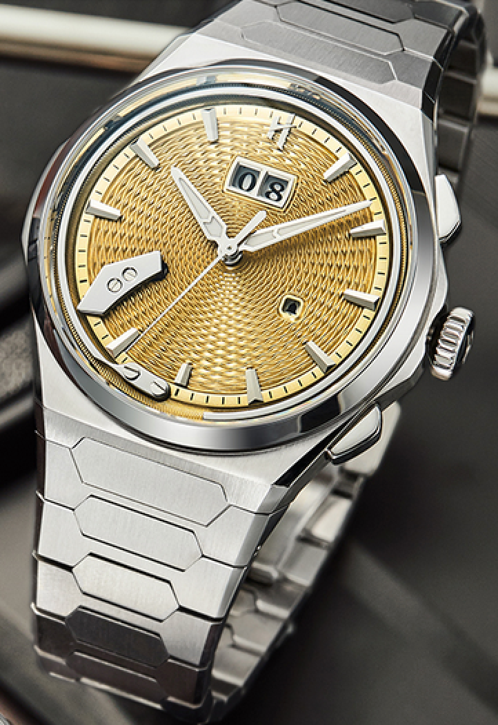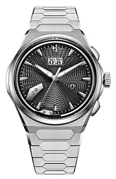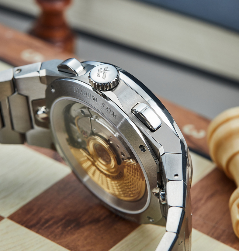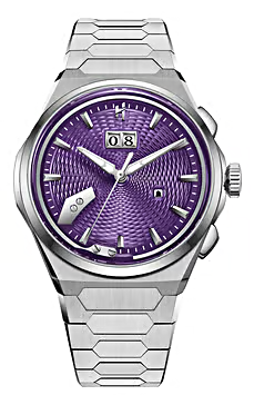 Son boîtier en titane de grade 5 ne pèse que 75 g, offrant une légèreté remarquable sans compromis sur la robustesse. Le cadran, orné de guillochages complexes réalisés à la main, sublime chaque regard porté sur cette pièce rare. Le carillon mécanique est mis en valeur par une ouverture partielle du cadran, laissant entrevoir ses marteaux et son mécanisme de frappe.