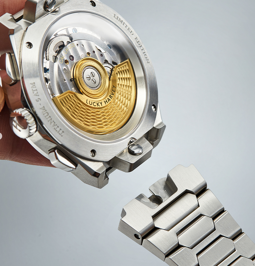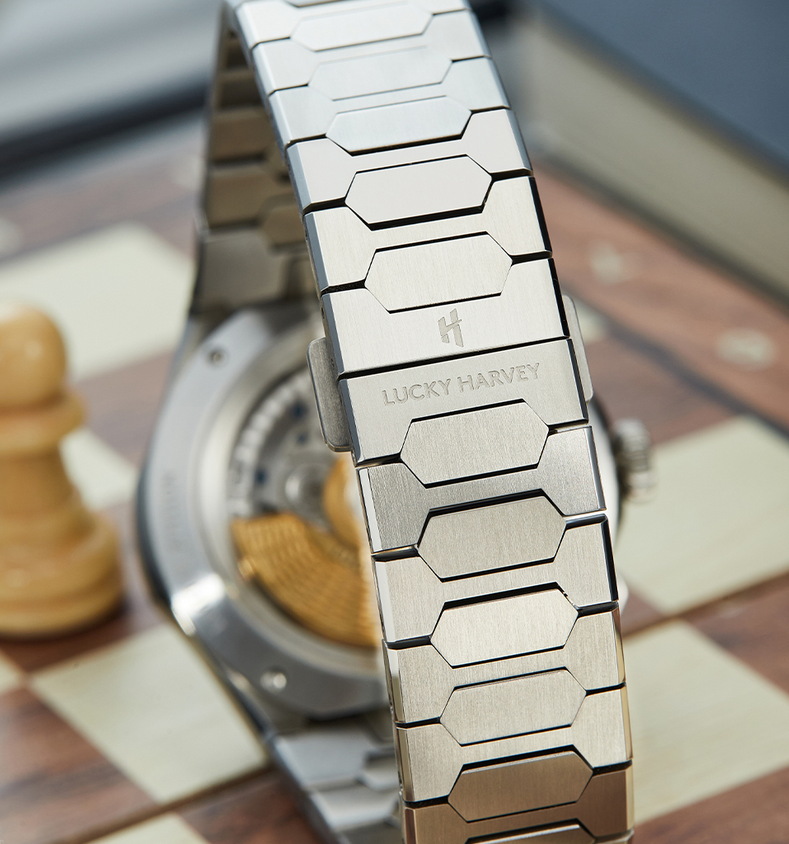 La Lucky Harvey Visible Chimes est une montre mécanique singulière qui fusionne innovation sonore, design contemporain et savoir-faire décoratif. Elle se distingue par une rare complication : un mécanisme de carillon visible, permettant à la montre de sonner l’heure à la demande, directement au poignet.