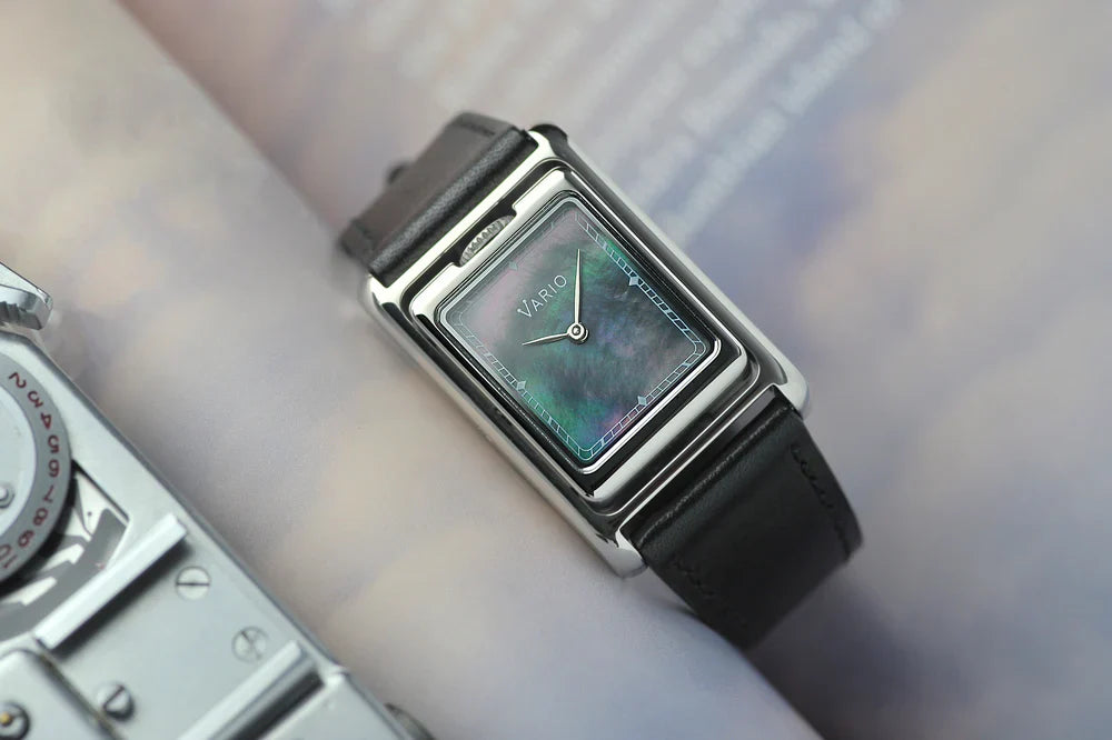 Vario VERSA Reversible Dual Time Silver-Black Mother of Pearl Watch