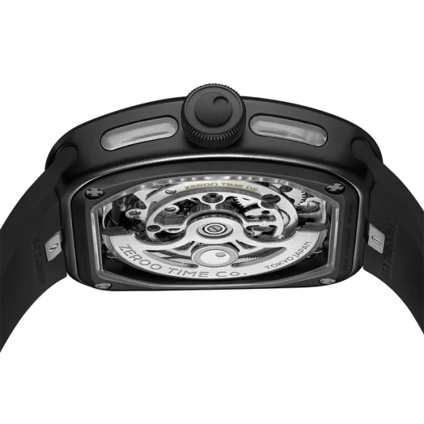 Sur le côté du boîtier, une fenêtre arrondie offre un aperçu du mouvement complexe à l'intérieur. C'est l'essence même de ZEROO : ne pas cacher le magnifique mécanisme, mais transformer le boîtier en un design squelettique, vous permettant d'apprécier pleinement l'élégance du mouvement.