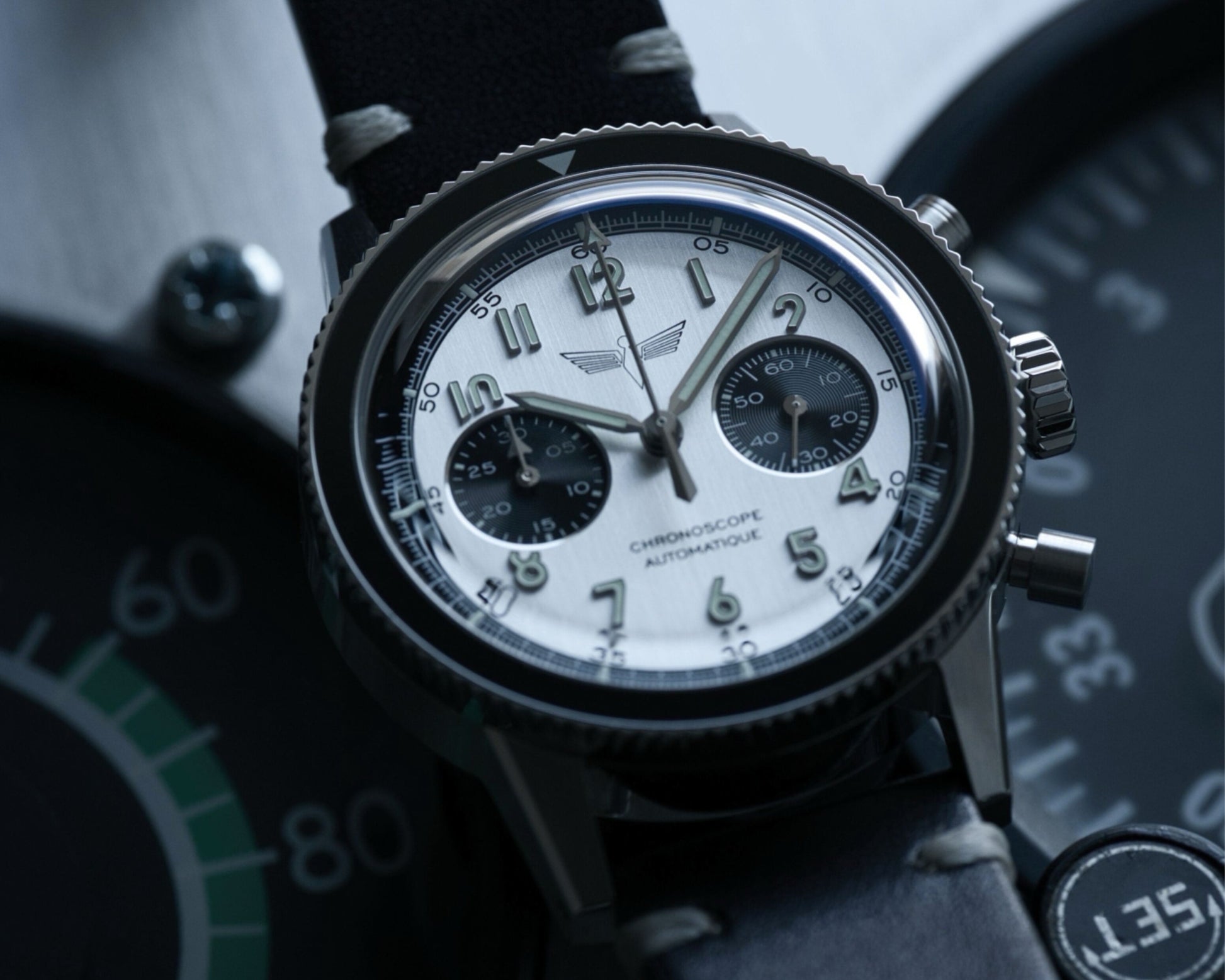 La WP-01 PAPA de DÉDALE est une montre automatique au design affirmé, inspirée de l'instrumentation aéronautique, qui incarne l'esprit de liberté et de précision.