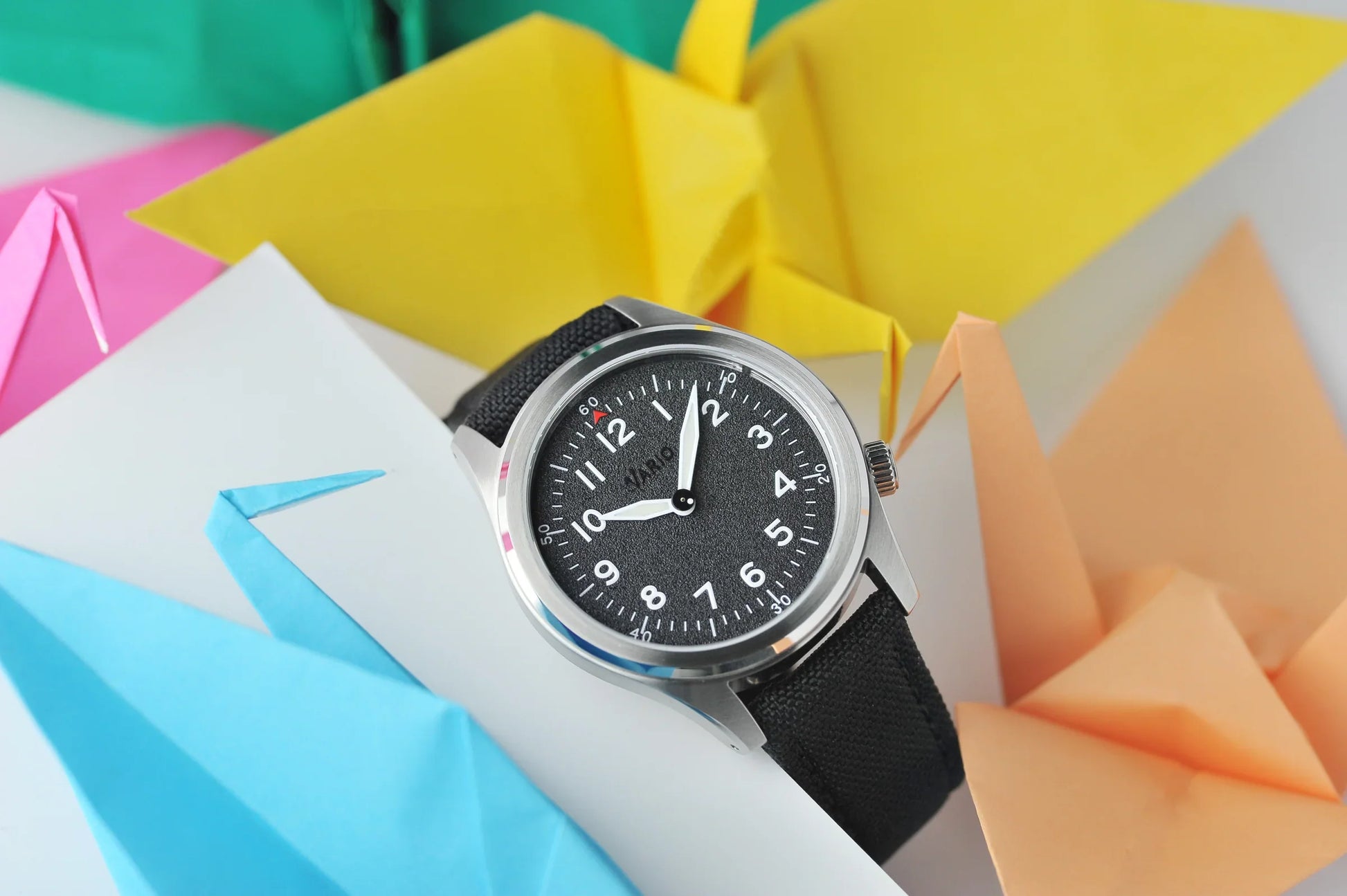 שעון ה-Vario 1945 A-11S מפרש מחדש את ההיסטוריה עם מסר של שלום. מחוג השניות המרכזי של שעון ה-A-11 האייקוני שעוצב באמריקה חולל מהפכה במדידת זמן מדויקת, ואפשר לחיילים לסנכרן את פעולותיהם במהלך תמרונים קריטיים בשדה הקרב. הסרת מחוג השניות המרכזי בשעון ה-A-11S Solar Quartz משנת 1945, והחלפתו בדיסק פשוט ונקודה מנוגדת, מאפשרת ללובש לצפות בחלוף הזמן תוך סמל של ויתור על כלי המלחמה. שעון ה-A-11S משנת 1945 הוא סמל של רגיעה, בהשראת התקווה לעתיד שליו שדאקו סאסקי דמיינה דרך אלף עגורי האוריגמי שלה.