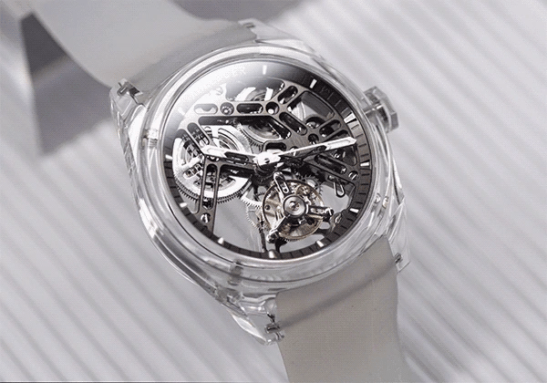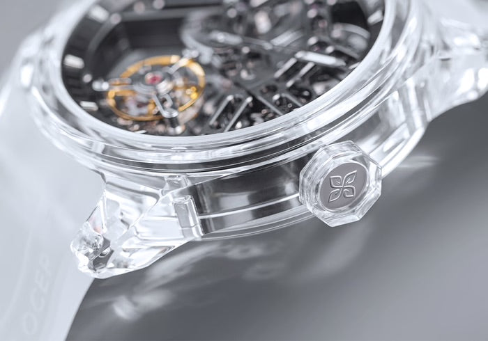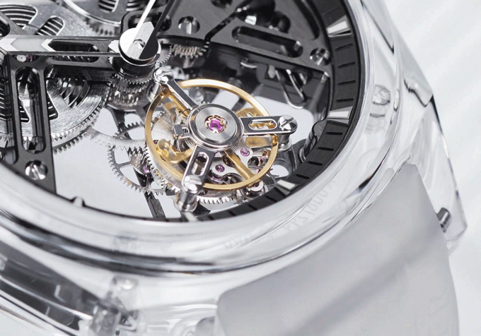Le boîtier « Ice Watch » met en valeur le tourbillon, comme suspendu au poignet.