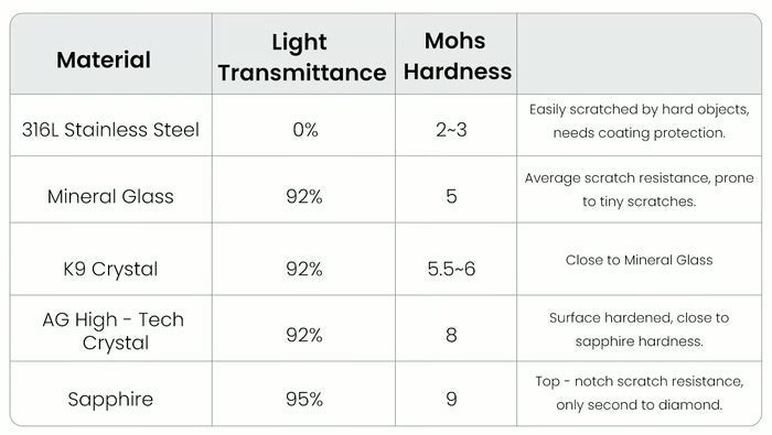 Premier boîtier en cristal K9 haute technologie (dureté Mohs 8)