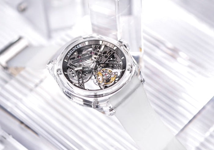 le tourbillon volant à balancier libre entièrement transparent, signé AGELOCER.
