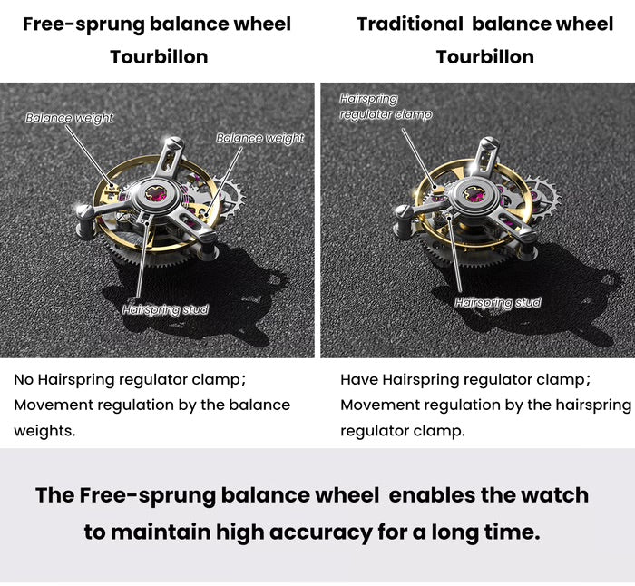 Le balancier free-sprung supprime le régulateur de raquette, améliorant la stabilité à long terme.