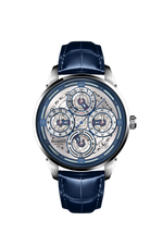 Le cadran de la NaviGraph présente un fond texturé de couleur bleu marine, évoquant les profondeurs océaniques. Les indications d'heures, minutes et secondes sont agencées de manière originale, créant un affichage tridimensionnel captivant qui rappelle les instruments de navigation maritime. Le boîtier en acier inoxydable 316L de 42 mm, robuste et élégant, est équipé d’un verre saphir bombé antireflet, assurant une durabilité et une visibilité parfaite dans toutes les conditions.