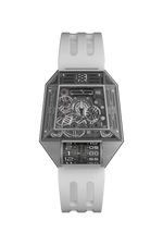 Cette montre intègre plusieurs brevets, dont un mécanisme de réglage de l'heure à levier remplaçant la couronne traditionnelle, et un système de changement rapide de bracelet. Le boîtier mesure 44 mm de longueur, 38 mm de largeur, avec une épaisseur de 12,6 mm et une étanchéité de 3 ATM, pour un style résistant et polyvalent. Livrée avec un bracelet en fluoroélastomère, elle offre un confort durable et une variété de couleurs pour s’adapter à toutes les occasions.