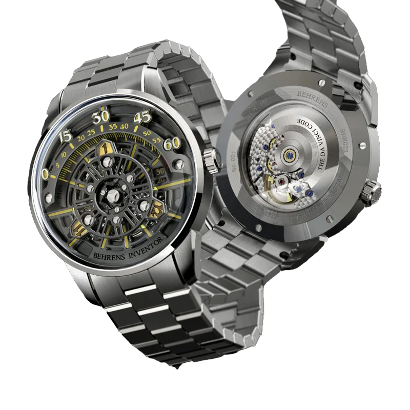 La Behrens The Da Vinci Code B023 est une montre mécanique unique inspirée par le mystère du célèbre "Da Vinci Code". Avec son design intrigant et ses fonctionnalités novatrices, cette montre propose un affichage de l'heure par satellite qui imite un système codé, offrant une expérience horlogère aussi captivante que mystérieuse. Équipée d'un mouvement automatique Swiss Made, elle intègre un module mécanique développé en interne pour un affichage d’heure unique et codé.